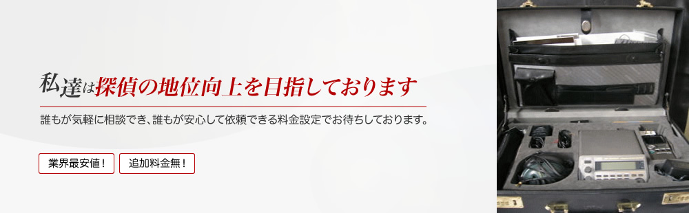 浮気調査や素行調査、結婚詐欺、保険金詐欺の調査を始めとして柔軟にお客様のご要望にお応えする興信所。
