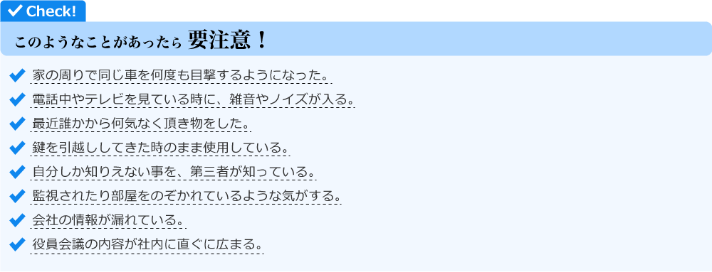 何故なら、盗聴器を仕掛けているのは身近にいる人達の可能性が高いからです。